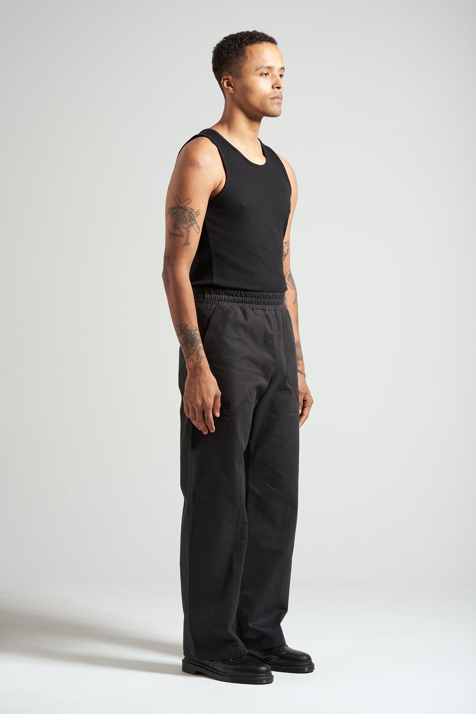 Refreshed for AW24, We introduce the best selling staple pant. Cut from an emerised 100% cotton drill. Features 2 front pockets, front and rear seams and self fabric elasticated waistband.