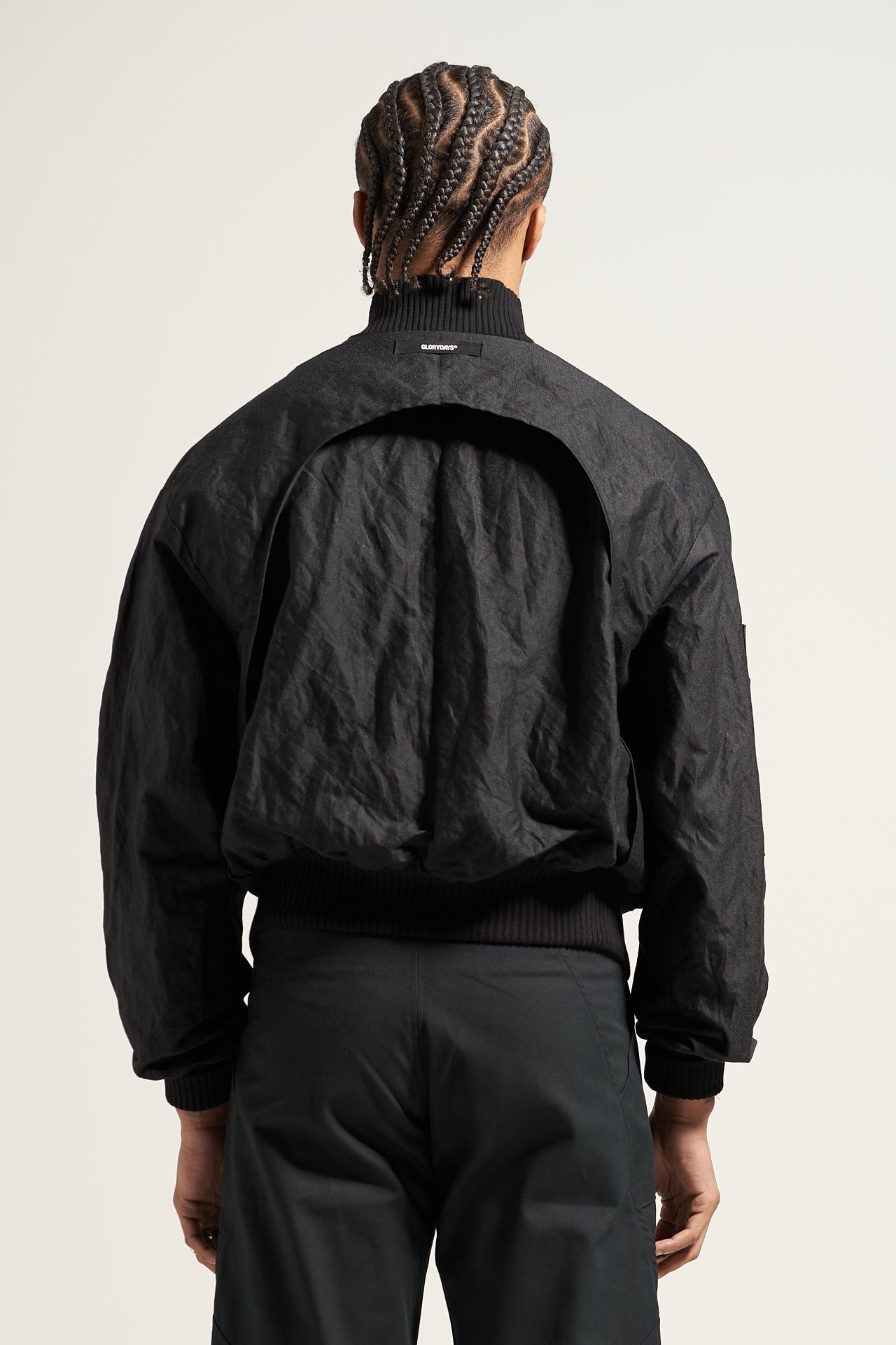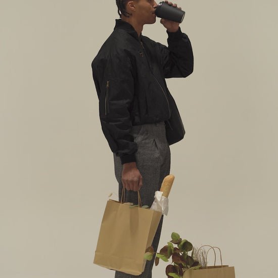 The Bomber is Cut from a very unique 87% cotton/ 13% metal blend that subtly sparkles in the light. Features a boxy cut, 2 way heavy brass zipper, brushed cotton flannel lining, 2 big front inseam pockets, oversized zip arm pocket and 100% cotton rib, cuffs, and neckline.