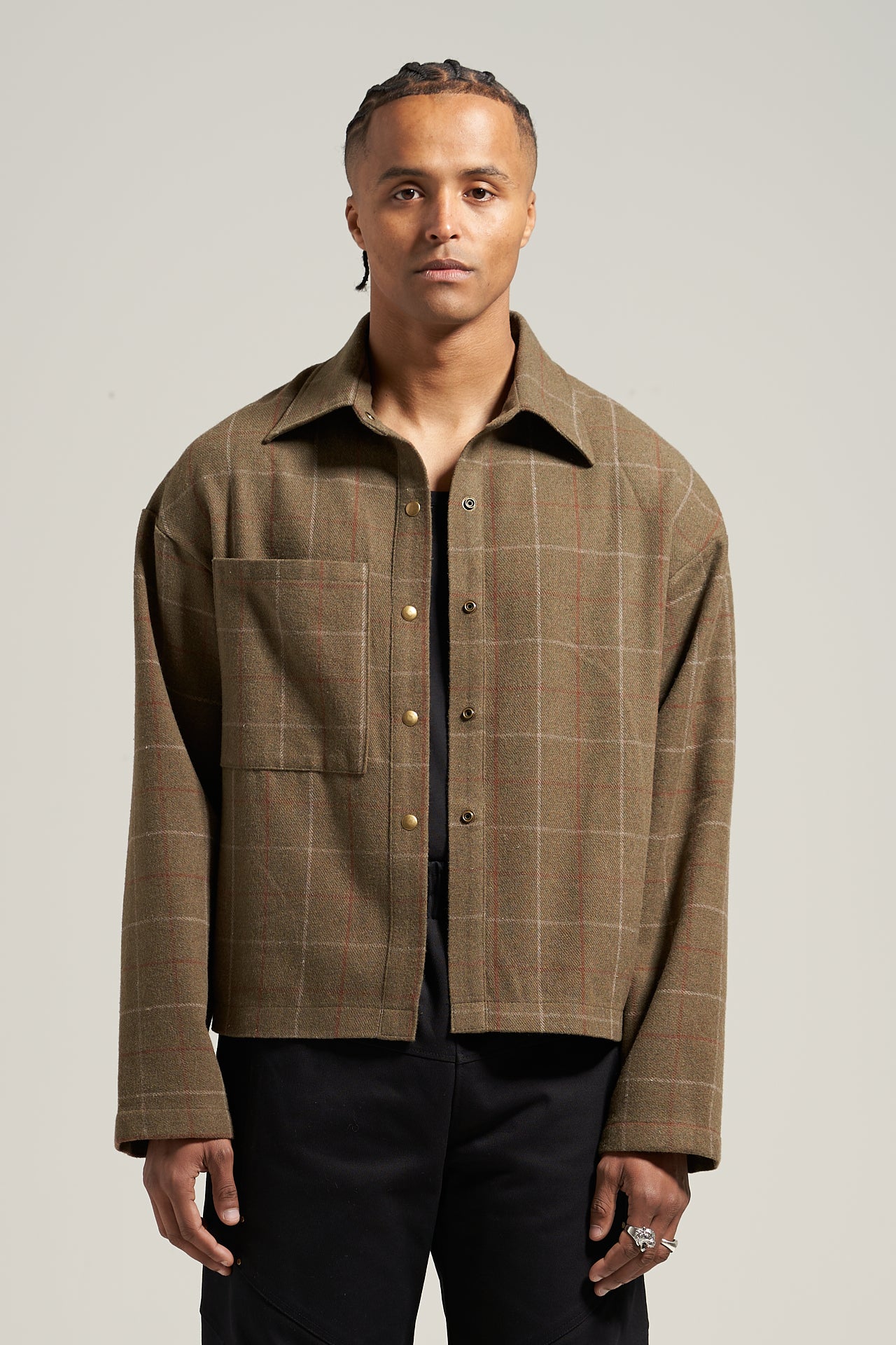 New for AW25 we reinvent the classic flannel shirt. Cut from an 100% wool heavy flannel coating. Features a boxy fit, floating back yoke, single breast pocket, antique brass hardware with our classic label detailing.