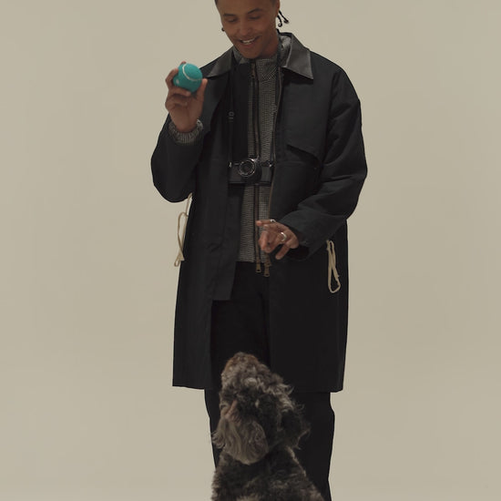 The Trench is Cut from a 11oz brushed cotton canvas. Features a knee length wide fit, front and back storm flaps, 2 riveted inseam pockets, cinchable waist with contrast drawstring and waxed full grain leather collar.